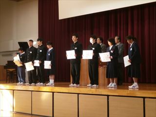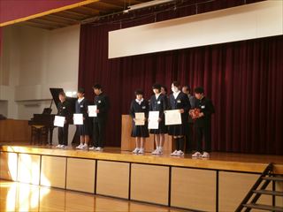 本日の朝会は、先日行われた、書き初め展・美術展・夢きらきらアート展・