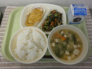 ひじきのそぼろ煮 みそ汁 牛乳
