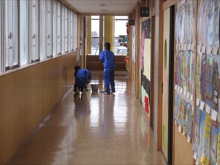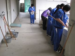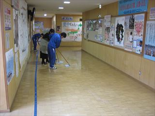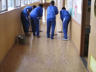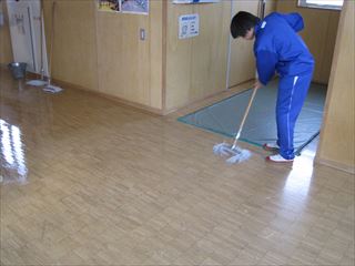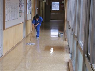 美化委員の生徒と先生方も協力して、校内のワックスがけが、すべて完了しました。