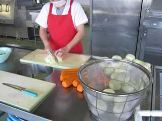 *毎日の給食づくりは、事前に献立決めがあり、当日の下準備、調理、そして片付けがあります。