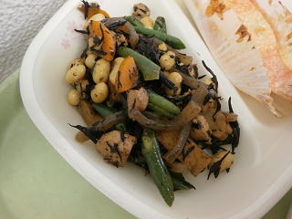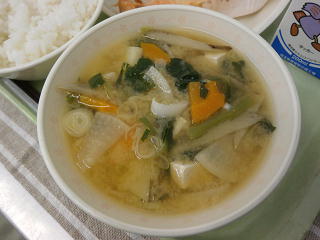 具だくさんの味噌汁です。たくさんの野菜を摂取できます。