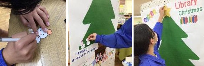 本を借りてオーナメントを飾り、みんなで華やかなツリーをつくる取組です。