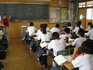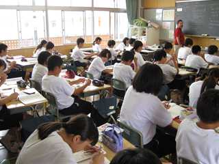 教科書の問題を解きながら確認をしています。教師も大切な学習内容ですから、生徒