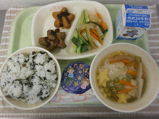 今日は少し早い七夕給食です。色々な食べ物が星の形に