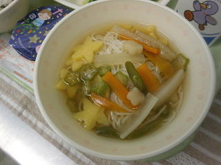 七夕スープは、人参、だいこんは短冊を、そうめんは雲を、