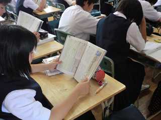 「文章名人・書くプロセス」=自分の思いや考えをまとめるには=を題材にして、作文指導の授業が進められています。自分の考えをわかりやすく表現する力を育成することも目標です。書くことが少なくなっている今、相手に自分の意図することを伝える手段として、もう一度作文について学び、表現力をつけましょう。