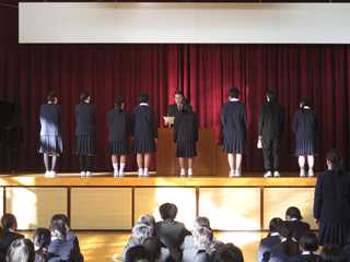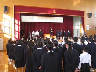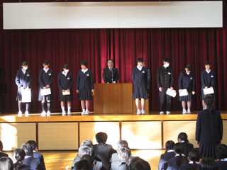 本日の朝会は、2学期を中心に、これまでに豊里中生が各種大会や展覧会等で