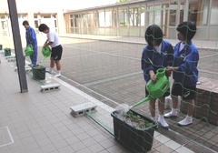 きっと夏場の暑さを和らげるとともに,きれいな花を咲かせてくれることでしょう。大きく育つよう,水くれなど頑張りましょう。