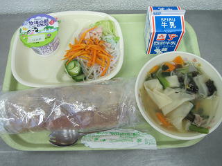きなこ揚げパン ワンタンスープ 春雨サラダ