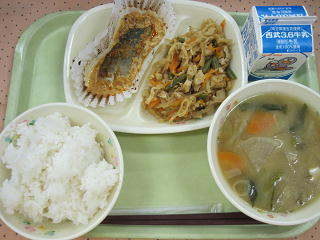 3日(木)の給食 魚のピリ辛マヨネーズ焼き