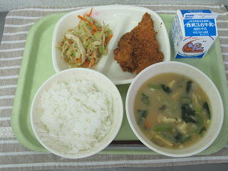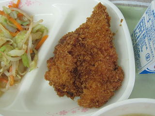 明日から中間テストです。今日は中間テスト応援献立で、「カツ」です。