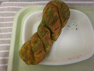 この時期限定の抹茶揚げパンです。先生方から特に好評でした。