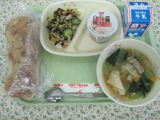 ツナとひじきのサラダ 牛乳 白桃ヨーグルト