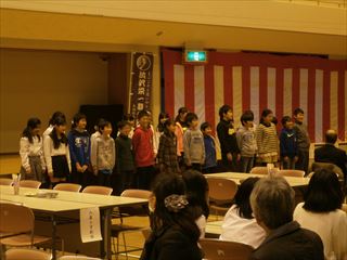 会では、生誕祭式典から始まり、八基小学校の児童による発表と、歌「雄気の人」を