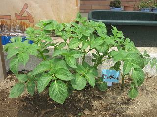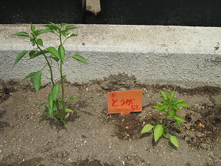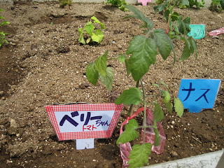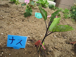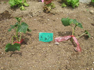 (ナスときゅうりの支柱は、用務員さんが手伝ってくださいました。)