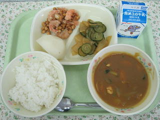 カレーライス 大豆のカリカリ揚げ 牛乳