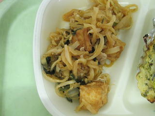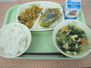 白飯 魚の味噌マヨネーズ焼き 豚肉ち切り干しのキムチ炒め