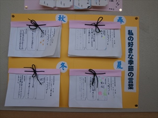 また、「私の好きな季節の言葉」としても生徒が書いたものを掲示しています。