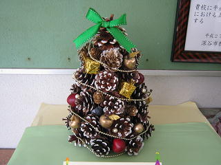 職員室の入り口の所に松ぼっくりで作られた、かわいい