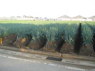 ◆学校周囲の畑では、出荷を待つねぎが、大きく育っています。