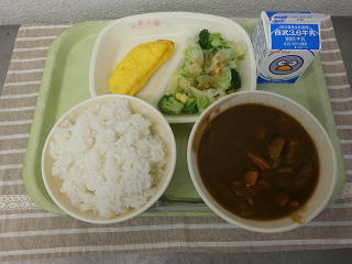 ハヤシライス オムレツ グリーンサラダ 牛乳