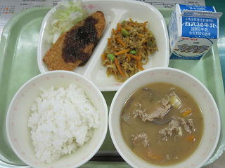 本日の給食 切り干し大根のカレーそぼろ炒め