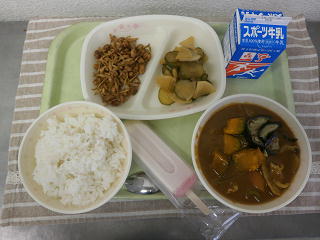 かぼちゃとなすは素揚げしました。また、今日の給食はセレクトです。