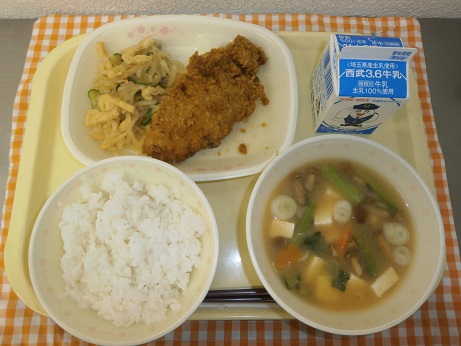 10月29日は、体育祭です。今日は体育祭応援献立で「かつ丼」にしました。