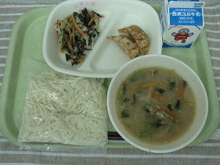 ごま味噌ラーメン 揚げぎょうざ ツナとひじきのサラダ 牛乳