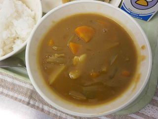 風が強く、より寒い1日でした。今日は体も温まるカレーです。