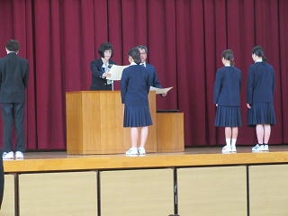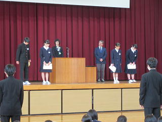 3学期第2回表彰朝会のようすです。