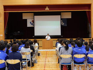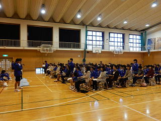 6時間目に宿泊体験学習の説明会がありました。概要についてや、昨年度の様子、保健の話、実行委員を中心に活動の紹介などもあり、宿泊体験学習に向けて気持ちが新たになりました。たくさんの保護者様に出席していただきありがとうございました。