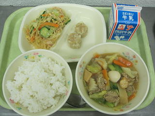 白飯、八宝菜、しゅうまい、春雨サラダ、牛乳