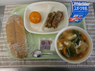 コッペパン いちごジャム 竹輪の磯辺揚げ