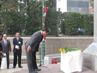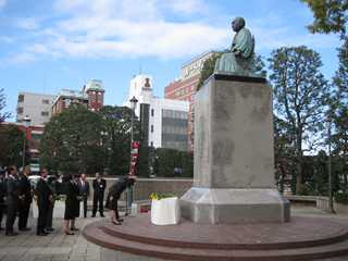 第19回青淵渋沢栄一翁 銅像献花式が行われました。~深谷駅前~