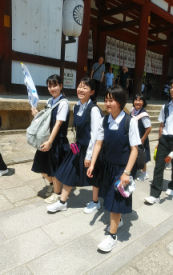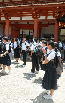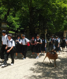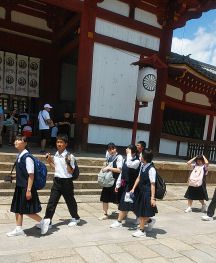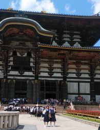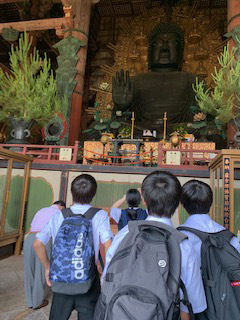 春日大社の駐車場でバスを降り、たくさんの鹿の出迎えを受けつつ、東大寺二月堂、三月堂を見学し、大仏殿へ。そこから班別行動で見学しました。(11:50~14:20)