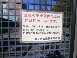 本校では、防犯の関係から、通常校門は閉めています。来校さ