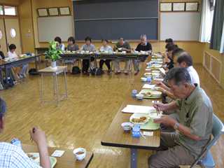 20名の委員さん方にお集まり頂き、授業参観と学校概要説明、質疑応答等を行い、その後、給食を試食して頂きました。