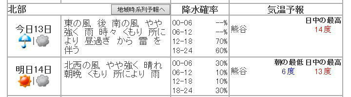 熊谷地方気象台発表によりますと、埼玉県南部、北部では、13日昼過ぎから強風に