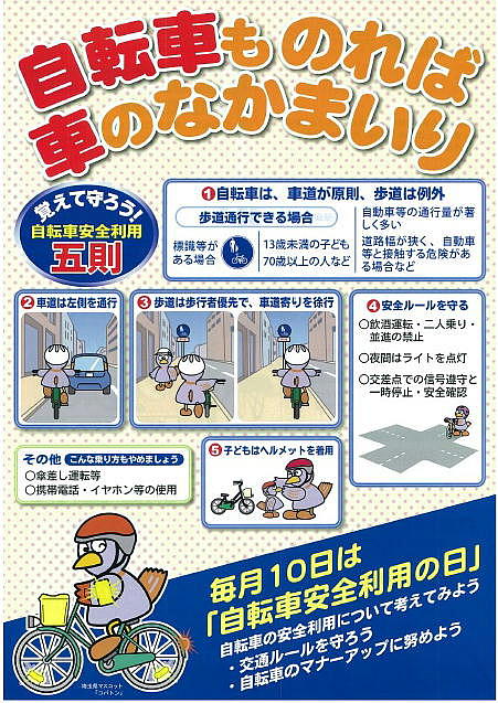 県民生活部参事兼防犯・交通安全課より、自転車交通安全啓発チラシが届きましたので、お知らせします。特に、自転車についての注意事項が含まれています。★この資料は、ここから⇒ 自転車交通安全啓発資料.pdf