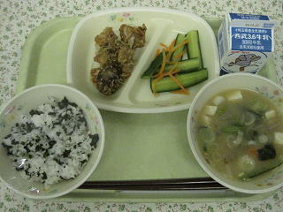 12日(水)の給食 鶏肉とレバーのふっかちゃん塩ダレ