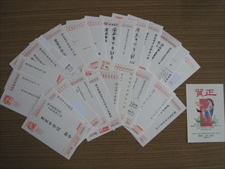 新年早々、豊里中学校宛てに多くの年賀状が届けられました。