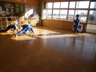 今日は、「ワックスがけ①」として各教室をかけました。来週22日は、廊下等にワ