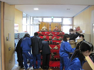 3月3日は桃の節句ひな祭り。毎年豊中でも生徒玄関付近に立派なおひな様を飾っていますが、昨日総合文化部の生徒がみんなで飾ってくれました。初めて飾る生徒もいたようで、みんなで試行錯誤しながら飾っていました。