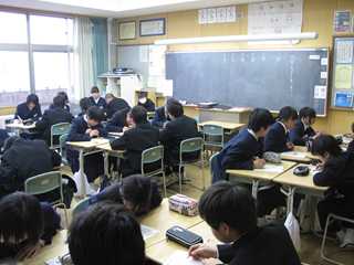 「自分を知る~授業態度をふり返り、より良い学級づくりに協力するとは~」の題材で、班毎に話し合いながら生徒自身で、てきることを考え発表しました。学級づくりの中から、自分のできること、やらなければいけないことをしっかりと考える授業になりました。さあ、実際に行動できることがこの授業の大切なところですね。がんばろう!