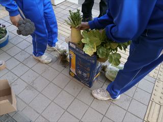 昨日、学校ファームで栽培していた野菜を収穫しました。