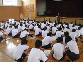 1学期のまとめや反省、そして夏休みに向けての指導などが主な項目です。どの学年も、生徒や先生方の話をよく聞き、資料を見ながら確認していました。(特に、3年生や2年生は、高校説明会や見学会、上級学校訪問等の説明がありましたので注意して聞いていました。)