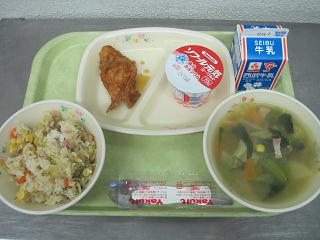 ふっかちゃんピラフ 鶏肉のレモン煮 野菜コンソメスープ
