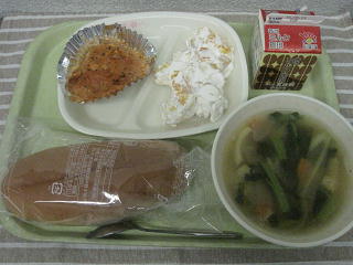 パンにはさんで食べたり、パンとは別々に食べたり、生徒によって食べ方は