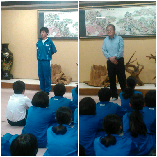 大広間で閉校式を行い、ホテルの方から「水の恵みをもたらす雨を恨まないでください。」との深いお言葉をいただきました。